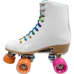 Patins Quad OWL Sports Rainbow Aluminum Tamanho: 40 O Patins Quad OWL Sports Aluminum é o mais novo lançamento da OWL para o segmento premium Conta com botas em material sintético, no formato cano alto, trazendo conforto e muito estilo. Podendo ser em qualquer tipo de asfalto. Os patins aluminum contam com base de aluminio e freios ajustaveis, rodas em poliuretano fundido PU com 53mm de diâmetro e rolamentos ABEC-11, aliando performance, qualidade e durabilidade. Suporta até: 120kg -truck de alumínio injetado sob pressão. - Eixo do Truck em Aço Carbono 1045. - Base em aluminio injetado - Rodas em Polyurethane Shore 85A.Derramado - Porcas Autotravantes e parafusos em aço. - Rolamentos ABEC 9. - Amortecedores em TPU Shore 80A. - Sola da Bota em PVC Shore 85A. - Bota em tecidos sintéticos. - Peso aprox. Dos patins: 3,5 kg. - Suporta até 150kg. Marca: Não Informado