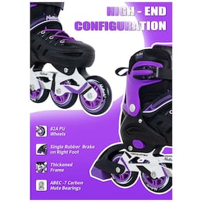 Rodas: Os patins são equipados com rodas de poliuretano de alta qualidade. Estas rodas são projetadas especificamente para patinação em linha, oferecendo uma boa combinação de aderência e velocidade. As rodas de rolamento suave garantem deslizamento e manobrabilidade sem esforço em diversas superfícies, desde pavimentos lisos até pistas internas.