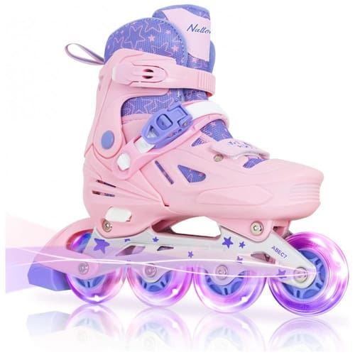 Patins Regulável para Crianças com Rodas Iluminadas para Iniciantes, Tam BR 35 a 39, Nattork, Rosa
