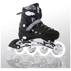 Oito Rodas LED: Nossos patins em linha contam com oito rodas iluminadas que acendem automaticamente ao começar a patinar. As luzes são alimentadas pelo movimento das rodas, eliminando a necessidade de substituição de bateria Imagine como seria incrível piscar intensamente como uma luz no escuro Seus filhos vão adorar essa experiência luminosa.