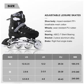 Tamanho Ajustável: Cada patins possui um botão de ajuste de comprimento. Ao pressionar o botão de tamanho, é possível ajustar facilmente o comprimento, proporcionando conveniência mesmo à medida que os pés crescem. Assim, crianças e jovens poderão usufruir dos patins por muitos anos.
