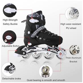 Leve e Respirável: Estes patins em linha são ideais para iniciantes, apresentando um design superior de malha com fio voador 3D. Esse design oferece envolvimento e suporte, reduzindo a carga ao caminhar, enquanto expulsa efetivamente o calor do interior dos patins. O forro de conforto espesso, feito de espuma EVA, mantém os pés relaxados e confortáveis. Desfrute de uma viagem relaxante e respirável com estes patins.