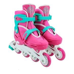 Patins roller infantil in-line ajustável rosa unitoys 1439Comprar sempre dois números acima do que se usa de tenisPeso máximo: 45kgO patins in line da turma da aventura 4 rodas auxilia no equilíbrio e coordenação motora da criançada em seu primeiro contato com o esporte de rodas, conta com o kit de proteção que protegerá a criançada ao aprender. Seu tamanho que varia de 34 ao 37 serve para que a criança se divirta com os patins por um tempo maior, com cores vibrantes e super seguras para garantir a máxima diversão e tranquilidade para seus pais. Kit de proteção para cotovelos e joelhos + capacete Tamanho ajustável Rodas de pvc Certificado de segurança inmetro Freio traseiro Rolamento abec 7As cores, podem variar, mandamos conforme disponibilidade em fábrica, o desenho do capacete também poderá ser outro.