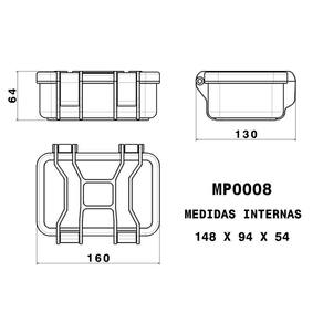 Mala/case Patola modelo MP-008. Construída para as condições mais adversas, a mala hard case Patola MP-008 é perfeita para acomodação de equipamentos profissionais de diversos gêneros, como caça e pesca, , drones, esporte e lazer, equipamentos de segurança, ferramentas, fotografia, Hospitalar, instrumentos musicais, laboratório, medição, náutica, off-road, saúde ou para uso geral. Produzido em termoplástico de engenharia e com borracha de vedação, garante a proteção contra impactos, além de obstruir a possibilidade de entrar água e pó. A Case Patola MP-0008, possui design arrojado. Fechos duplos para travamento que impede a abertura da caixa durante o transporte ou quando é derrubada. Dimensões interiores Comp. X Larg. X Alt. 148 x 94 x 54 mm Dimensões exteriores Comp. X Larg. X Alt. 160 x 130 x 64 mm Peso líquido: 210 g Capacidade: 0,75 l Resistente à água e Pó IP65 . Espuma de proteção vendido separadamente. Cor: Bege Escuro. Marca Patola- Fabricante 100% nacional. de fábrica: 12 meses. Marca: Patola. ATM é revendedor autorizado Patola. Aguardamos seu pedido Obrigada pela preferência Marca: Não Informado Ean: 7898911618536