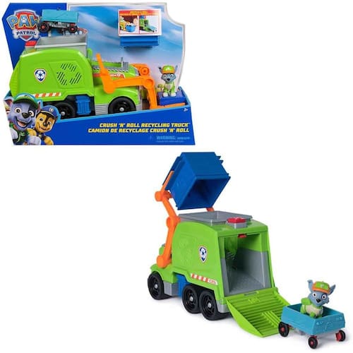 Salve o dia com Rocky e seu brinquedo de caminhão de reciclagem Crush N? Roll! Coloque Rocky no banco do motorista antes de partir para sua missão!