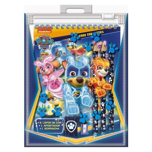 Colorir é muito mais divertido com a Patrulha Canina Colorindo com Alegria ! O kit vem com 3 lápis de cor, um apontador, uma borracha e desenhos para colorir os filhotes mais corajosos da TV. É perfeito para soltar a imaginação e colorir com muita diversão!