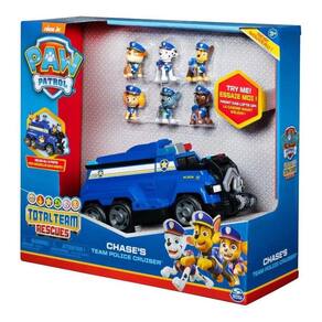 A diversão esta mais que garantida com o Veiculo Patrulha Canina - Total Team Rescues - Team Police Cruiser - Chase's - Sunny. Em um único destino, execute sua missão de resgate no Total Team Rescues. Veículo do Chase com toda a equipe da Patrulha e um jogo de contar histórias em um conjunto de presentes. Inclui 1 Ultimate Police Cruiser e 6 filhotes de cachorro finais da polícia. Nesta animação pré-escolar de ação e aventura, seis filhotes heroicos, Chase, Marshall, Rocky, Zuma, e Skye, são liderados por um menino de 10 anos de idade chamado Ryder.