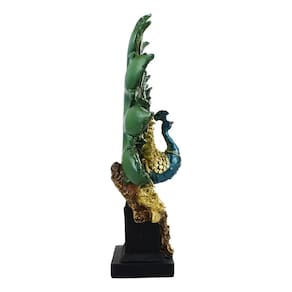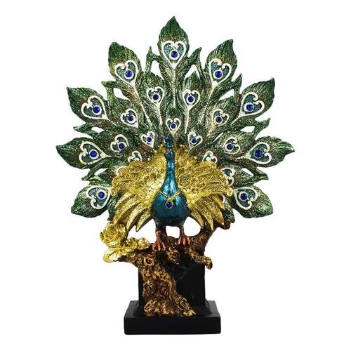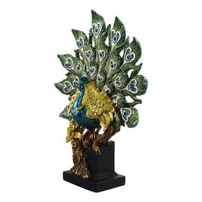 Enfeite decorativo no formato de um majestoso pavão de 32,5 cm de altura com a cauda aberta. Cores intensos rico em detalhes. Ideal para decoração de interiores. Material: resinaCódigo: LK23870L5-MPeso: 750gAltura: 32,5cmLargura: 25cmComprimento: 7,5cm