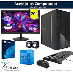Pc completo intel i7 sexta geracao nvme 512 gb 16 gb ddr4 mon 20 w 11 Equipamentos prontos para usar no dia a dia, com peças de qualidade, sistema instalado e de quem sabe o que faz. Ideal para quem busca um computador ágil e confiável, essa máquina foi pensada para lidar com várias tarefas ao mesmo tempo, sem travamentos ou perda de desempenho. Nossos diferenciais: 2. Montagem nacional com padrão profissional Todos os nossos computadores são montados em ambiente industrial dentro do brasil, seguindo normas técnicas e rigoroso controle de qualidade. Isso garante um equipamento confiável, com suporte direto e entrega mais rápida. 3. Armazenamento m.2 nvme: velocidade de nova geração Este computador já vem com armazenamento no formato m.2 nvme, que é ainda mais rápido do que os ssds tradicionais. Essa tecnologia permite inicialização quase instantânea do sistema e abertura de programas em segundos, oferecendo uma experiência mais fluida e produtiva no uso diário. 4. Desempenho com processador intel Equipado com processador intel, reconhecido mundialmente por sua estabilidade e eficiência, esse computador oferece excelente desempenho para uso diário, multitarefas e aplicações profissionais. Você verá as especificações completas do processador mais abaixo na descrição. 5. Expansível e pronto para upgrades - sem perder a Quer adicionar uma placa de vídeo dedicada Ou instalar mais memória ou um novo hd Espaço interno e conexões disponíveis para você expandir quando quiser. Instale mais memória, hd ou placa de vídeo sem afetar a de fábrica. 6. de fábrica e suporte ao cliente Produto testado, revisado e enviado pronto para uso. Conta com completa e suporte técnico direto com a gente. . Em caso de dúvidas, estamos prontos para atender você com agilidade e clareza, garantindo uma experiência pós-venda segura e confiável. Especificações técnicas: Processador Marca: intel Série: i7 6 geração Frequência base: 3.40 ghz Frequência turbo max: 4.00ghz Núcleos: 4 Threads: 8 Placa-mãe Modelo: h110 chipset intel Socket: lga 1151 - suporte para intel i3/i5/i7 6 e 7 geração Formato: micro atx Memória: 2 slots ddr4 - até 32gb Vídeo: hdmi + vga Slots de expansão: 1x pci express x16, 2x pci express x1 Armazenamento: 3x sata iii Usb traseiras: 2x usb 3.0 + 4x usb 2.0 Rede: gigabit lan 10/100/1000 Áudio: hd integrado line in/out + mic Outros: conectores frontais para usb, áudio e fan Memória ram Capacidade: 16gb ddr4 Armazenamento Tipo: m.2 Capacidade: 512gb Gabinete Placa mãe suportada: micro atx Conexões: 2x usb e 2x áudio Cor: preto Baias: não possui Fonte Voltagem: bivolt Potência: 230w Sistema operacional Windows 11 pro vitalício Acessórios Monitor Teclado Mouse Caixa de som Monitor Especificações -tamanho da tela: 20 -formato de tela: 16:9 widescreen -resolução : 1600900 , hd+ 75hz -brilho: 300 cd/m2 -contraste: 1000:1 tipico -tempo de resposta: 5ms -suporte de cores: 16 milhões de cores - controle de ajuste digital -entrada: hdmi, vga -acompanha cabo hdmi -bivol -cor: preto -montagem da parede vesa: sim 12 meses Observações: - as imagens são meramente ilustrativas. - mudanças podem ocorrer no design do produto de acordo com o nosso momentâneo.