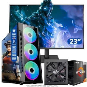 01 - PC Gamer AMD Ryzen 5 5600GT, 16GB RAM, Placa de video Radeon Vega 7, SSD 480GB, Fonte 550W + Monitor 23 LED 75hz