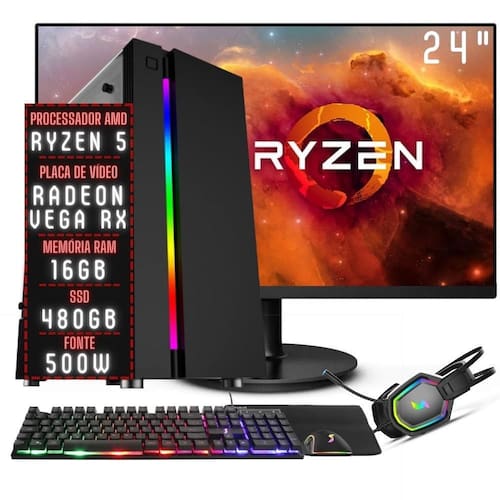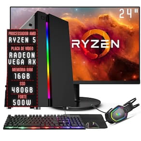 Graças ao alto poder do processador AMD Ryzen 5, que conta com 12 núcleos, aliado ao desempenho extremo da placa de vídeo Radeon VEGA, a sua jogatina está garantida.