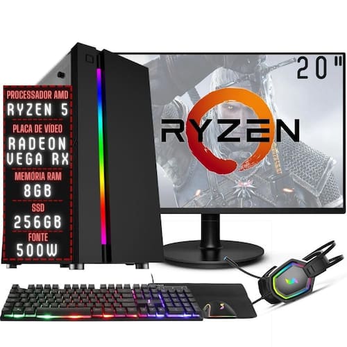 Graças ao alto poder do processador AMD Ryzen 5, que conta com 12 núcleos, aliado ao desempenho extremo da placa de vídeo Radeon VEGA, a sua jogatina está garantida.