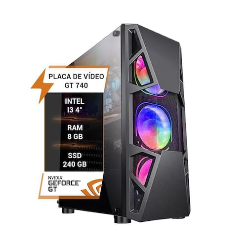 Pc gamer core i3 4 gt 740 memória 8gb ddr3 ssd 240gb Este pc gamer é a máquina definitiva para conquistar a gameplay perfeita em seus jogos Equipado com um processador potente i3 de 4 geração, placa de vídeo gt 740 2gb e 8gb de memória ram ddr3 para enfrentar desafios com precisão e velocidade inigualáveis, ssd de 240gb para seus jogos e aplicativos carregarem rapidamente e garantir uma experiência fluida e sem interrupções. Domine seus oponentes e conquiste a glória com este arsenal gamer de alto nível gg