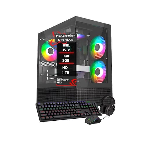 Pc Gamer Maximus I5 1650 Mem. 8gb Hd 1Tb SSD 120gb Os PCs Gamer têm uma configuração focada em colecionar vitórias, a linha de PC Gamer é ideal para quem busca desempenho, velocidade e qualidade de imagem em seus jogos Um PC Gamer completo e repleto de componentes potentes, desde gabinete até o processador, esse sem dúvida é o arsenal que você precisa para conquistar o universo dos games. Processador, Memória e tudo que você precisa saber Esse PC Gamer tem tudo para seus jogos. Equipado com o processador Intel Core i5-3330 3º Geração, placa de vídeo GeForce 1650, uma memória RAM de 8GB que vai te dar a vantagem em cada jogada. A fonte 500W libera todo o seu potencial e faz acontecer as melhores estratégias. Conquiste a partida, domine o oponente com essa máquina. Processador: Intel Core i5-3330 3º Geração 3.0 GHz - 4 núcleos Placa mãe: H61 - Socket 1155 CPU Suporte para processadores: 2º e 3º geração de processadores Intel Core i3/ i5 / i7com expansão de até 16GB com 2 slots DDR3 USB 6x Placa de vídeo GeForce 1650 4GB 8GB de Memória RAM DDR3 Disco Rígido: 1TB SSD: 120GB Fonte Real 500W bivolt Placa de Rede 10/100/1000 Mbps Sistema operacional: Windows 11 Interface de vídeo: HDMI, VGA e DISPLAYPORT Está incluso neste anúncio os seguintes itens: 1 CPU com os componentes descritos acima 1 Cabo de alimentação para a CPU 1 Combo Teclado, Mouse, Mousepad e Headset Gamer 1 Adaptador Bluetooth Marca: Não Informado