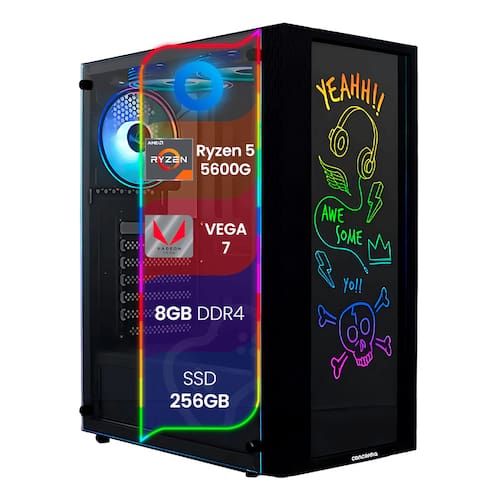 PC Gamer TOP Concórdia Processador Ryzen 5 5600G 8GB SSD 256GB Fonte 500w