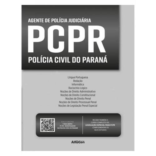 A OBRA A chance de fazer parte do Serviço Público chegou, e a oportunidade está no concurso para PCPR – Agente de Polícia Judiciária da Polícia Civil do Estado do Paraná. Para ingressar nesta carreira, é fundamental que a preparação para a prova seja feita de forma eficaz - com os materiais certos. Isto é, neste universo dos concursos públicos, estar bem-preparado faz toda a diferença. Por isso, a Editora AlfaCon, sempre atenta e preocupada com nossos concurseiros, apresenta esta obra diferente e perfeita para você. Nesse sentido, no decorrer dos assuntos, o estudante encontrará dicas para a sua compreensão. Toda essa disposição foi pensada para auxiliar o concurseiro, a obter sucesso na carreira que almeja. CONTEÚDOS CONTEMPLADOS • Língua Portuguesa • Redação • Informática • Raciocínio Lógico • Noções de Direito Administrativo • Noções de Direito Constitucional • Noções de Direito Penal • Noções de Direito Processual Penal • Noções de Legislação Penal Especial ON-LINE ? Legislação Especial para PCPR O AlfaCon preparou todo o material com explicações, reunindo os principais conteúdos relacionados a prova, dando ênfase aos tópicos mais cobrados. ESTEJA ATENTO AO CONTEÚDO ONLINE POR MEIO DO CÓDIGO DE RESGATE, para que você tenha acesso a mais conteúdo. Desfrute de seu material o máximo possível, estamos juntos nessa conquista!