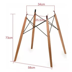 Altura: 74 a 75cm Pintura em pó (Epoxi) Madeira Eucalipto Tratada na Cor Natural. Base de mesa de Jantar em madeira com fios de aço carbono pintados entrelaçados.