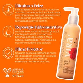 Máscara hidronutritiva com pH 4.0, ideal para uso diário e todos os tipos de cabelo.Combina hidratação e nutrição: pêssego e banana retêm água e vitaminas, girassol e manteigas restauram o manto lipídico.Enriquecida com Extrato de Pêssego, Óleo de Girassol, Manteiga de Karité e Murumuru.Promove cabelos alinhados, hidratados, com menos frizz e mais brilho.Oferece 7x mais brilho, 76% mais proteção antioxidante e 3x mais proteção da cor.Como usar: após o shampoo, aplique no comprimento e pontas, deixe agir por 5 minutos e enxágue. Pode ser usada diariamente.Dica: finalize com leave-in ao usar ferramentas térmicas.Notas de fragrância: floral frutada com pêssego, manga, frutas vermelhas, maracujá, jasmim, rosa, musk, sândalo e baunilha. Marca: Virá Cosméticos