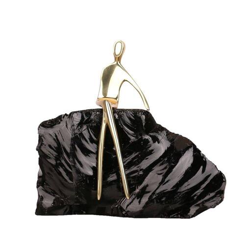 Peça Decorativa de Metal e Obsidian Preto e Dourado Cód: RAT0005