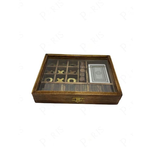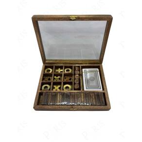 Cód: 15566-PL Peça Decorativa Jogo da Velha e Cartas com Estojo de Madeira e Metal Material: Madeira e Metal Cor: Dourado Dimensões: 22x16,5x4,5cm (CxLxA)