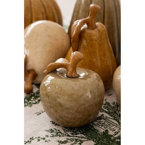 Acrescente charme e sofisticação à sua decoração com esta peça decorativa em formato de maçã em cerâmica bege, um detalhe delicado que transforma o ambiente com elegância e personalidade.