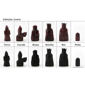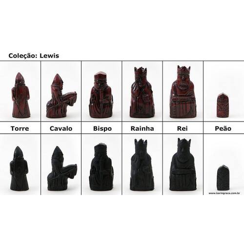 Acabamento: produzido artesanalmente; pintado nos mínimos detalhes à mão; base possui uma proteção em veludo Material: resina Medidas: base da peça: 1,5 à 4 cm Referência do produto: 783 Idade recomendada: 6 anos Recomendações: o tabuleiro que recomendamos para esse jogo é com a medida de: 46x46cm com as casas iguais ou maiores que 4,5 x 4,5 cm.