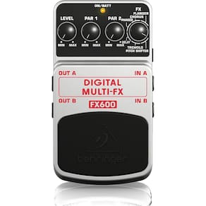 Descrição Este pedal de multi-efeitos digital oferece alta resolução estéreo de 24 bits. Graças à ampla regulação do som e ao controle de parâmetros adicional e multi-funcional, você tem à sua disposição uma amplitude de sons diferentes para cada situação. Especificações O regulador Level controla a intensidade sonora de saída. Os reguladores Par 1 e 2 possuem diferentes funções dependendo do efeito: Par 1: Chorus - Velocidade de efeitos - FX speed. Flanger - Velocidade de efeitos - FX speed. Phaser - Velocidade de efeitos - FX speed. Delay - Velocidade de efeitos FX speed. Tremolo - Velocidade de efeitos - FX speed. Pitch Shifter - Detune - rápida alteração da altura do som para um tom mais encorpado. Par 2: Chorus - Profundidade de efeito Depth. Flanger - Profundidade de efeito Depth. Phaser - Profundidade de efeito Depth. Delay - Número de repetições feedback. Tremolo - Formato de onda LFO shape Pitch Shifter - Intervalo de meio-tom. O regulador FX permite a seleção entre 6 efeitos diferentes: Chorus: este efeito confere ao sinal original uma ligeira desafinação. Deste modo, origina um efeito de vibração, em ligação com variação de altura do som. Flanger: originalmente, este efeito é criado com dois gravadores sincronizados. Os mesmos sinais são gravados em ambos. Se colocar apenas um dedo na bobina da esquerda, tal trava a bobina e consequentemente a velocidade de reprodução. Com o intervalo criado, são feitas as diferenças de fase nos sinais. Phaser: adiciona um segundo sinal com distorção de fase. O sinal resulta em um som mais consistente e mais vivo. Pitch Shifter: cria uma ligeira desafinação no sinal. Tremolo: este efeito é atingido após uma modulação periódica da intensidade sonora do sinal. Assim, ocorre uma troca contínua entre os sinais altos e baixos, originando um som trémulo e vibrante. Delay: Um atraso do sinal de entrada com número de repetições variável. Fabricante: Behringer Garantia: 6 meses Alimentação: Fonte 9V DC (não inclusa)