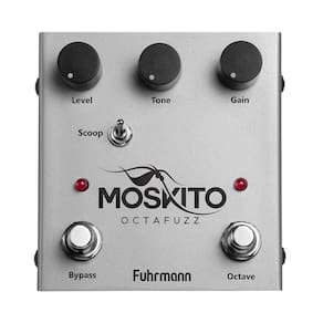o moskito octafuzz é um pedal de fuzz com oitavador harmônico natural, indicado para guitarra e contra-baixo, com possibilidades de aplicação em qualquer outro instrumento que a sua criatividade permitir. O efeito fuzz é um drive clássico e está presente em riffs épicos dos grandes nomes da música, de jimi hendrix a muse. O efeito também é utilizado nos estilos classic rock, stoner rock, grunge, blues entre outros. Especificações: - 1x output instrumento - 1x input instrumento - controles: level, tone, gain, 1x chave scoop para maior corte dos médios - 1x footswitch bypass - 1x footswitch octave - 1x led fuzz liga/delisga - 1x led octave liga/desliga - peso: 350g - chaveamento: true bypass - consumo: 20ma