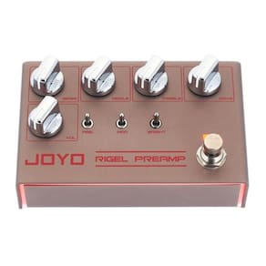 Pedal Guitarra Joyo Rigel Preamp O Pedal Joyo RIGEL PREAMP é um pedal de alto ganho e oferece um som limpo para guitarristas metaleiros. Além do EQ de 3 bandas, High Gain e controle de Overdrive, a chave seletora Bright cria um tom muito mais nítido, a chave seletora FEEL controla a firmeza do tom, enquanto a chave seletora MOD oferece 3 tons de cabeça especiais. Sua versatilidade o torna uma fonte de inspiração para você. Descrição: Dimensões da produto: 12,5x7,8x4,8cm Peso: 388g Impedância de Saída: 100 Ohms Impedância de Entrada: 1M Ohms Consumo de Corrente: 90mA Alimentação: 9V DC centro-negativo fonte não inclusa Comprando os produtos com distribuidores autorizados JOYO Brasil você tem acesso e vantagens como: -atendimento personalizado para tirar dúvidas -entrega rápida - de 12 meses -sem risco de ser barrado na alfândega produto já disponível no Brasil Marca: Não Informado Ean: 6972716321042