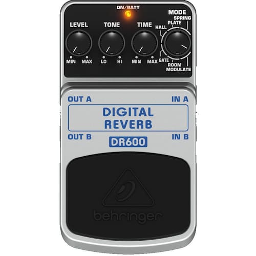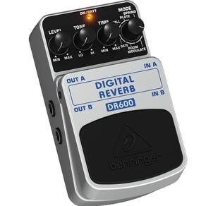 Marca: Behringer Modelo: DR600 Uso em Guitarras, Baixos e Teclados O regulador Level controla a intensidade sonora de saída. Tone pode alterar a sonoridade do conjunto de tons. Time ajusta o tempo de duração da ressonância. Com o regulador Mode, pode escolher entre 6 Reverbs diferentes: Spring: simula a reverberação clássica de mola. Plate: simula o som do reflexo em uma placa metálica. Hall: simula os reflexos de uma grande sala de concertos. Gate: este efeito corta artificialmente o som a partir de um determinado parâmetro. Room: simula a acústica natural de um quarto. Modulate: através de uma ligeira desafinação, é criado um som de espaço amplo que lembra um pouco efeito de coro. Dimensões : 11 x 6 x 5 cm Peso: 0,425 Kg : 6 Meses