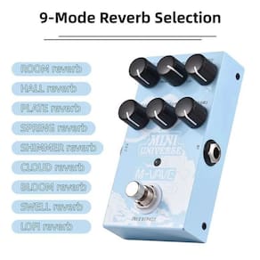 Este pedal oferece 9 tipos de reverbs: room, hall, plate, spring, shimmer, cloud, bloom, swell, e lofi. MINI-EFX permite obter timbres quentes, naturais e brilhantes, além de ter resposta dinâmica. Também possui botões de controle PARAM 1, PARAM2, PARAM 3, DECAY e MIX para você ajustar o parâmetro do efeito. Leve e durável, o pedal pequeno e compacto ocupa pouco espaço na pedaleira. Características de tamanho compacto, cor sólida, construção robusta, leve e durável.