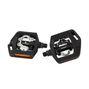 O Pedal Shimano PD-T421 Click Mtb com Taco e Plataforma Preto é perfeito para ciclistas que estão começando a usar pedais de encaixe, mas ainda preferem ter a opção de utilizar um lado com apoio convencional emborrachado em plataforma para tênis/sapato. Esse pedal faz parte da linha Click'R Touring Series da Shimano, que oferece um encaixe mais suave e fácil.