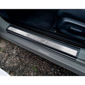 Fabricado em aço inox 304 o kit soleiras, vinil, pedaleiras e descanso de pé além de ajudar a proteger o local onde há o desgaste devido o calçado ficar o tempo todo esfregando, deixará o interior do veículo personalizado e com muito mais estilo.