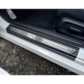 Fabricado em aço inox 304 o kit soleiras, vinil, pedaleiras e descanso de pé além de ajudar a proteger o local onde há o desgaste devido o calçado ficar o tempo todo esfregando, deixará o interior do veículo personalizado e com muito mais estilo.