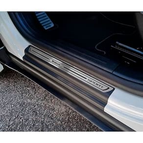 Fabricado em aço inox 304 o kit soleiras, vinil, pedaleiras e descanso de pé além de ajudar a proteger o local onde há o desgaste devido o calçado ficar o tempo todo esfregando, deixará o interior do veículo personalizado e com muito mais estilo.