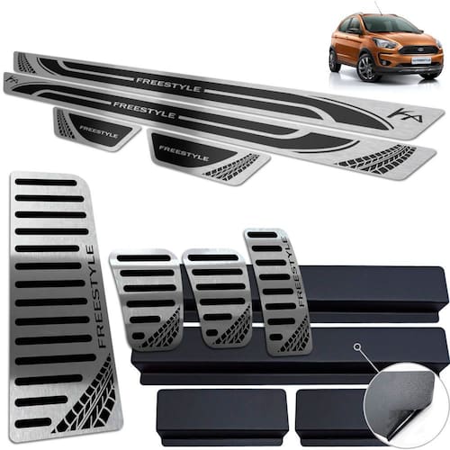 Fabricado em aço inox 304 o kit soleiras, vinil, pedaleiras e descanso de pé além de ajudar a proteger o local onde há o desgaste devido o calçado ficar o tempo todo esfregando, deixará o interior do veículo personalizado e com muito mais estilo.