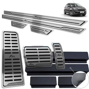 Fabricado em aço inox 304 o kit soleiras, vinil, pedaleiras e descanso de pé além de ajudar a proteger o local onde há o desgaste devido o calçado ficar o tempo todo esfregando, deixará o interior do veículo personalizado e com muito mais estilo.