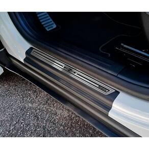 Fabricado em aço inox 304 o kit soleiras, vinil, pedaleiras e descanso de pé além de ajudar a proteger o local onde há o desgaste devido o calçado ficar o tempo todo esfregando, deixará o interior do veículo personalizado e com muito mais estilo.