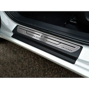 Fabricado em aço inox 304 o kit soleiras, vinil, pedaleiras e descanso de pé além de ajudar a proteger o local onde há o desgaste devido o calçado ficar o tempo todo esfregando, deixará o interior do veículo personalizado e com muito mais estilo.