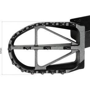 Diferenciais da Pedaleira Zeta Ultra Larga 57mm KTM: Construção em aço de alta resistência, garantindo extrema durabilidade Pinos estrategicamente posicionados, melhorando o grip e o controle Acabamento anodizado preto, resistente a corrosão e desgaste Largura de 57 mm, oferecendo mais estabilidade e aderência Design otimizado para reduzir a fadiga do piloto