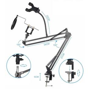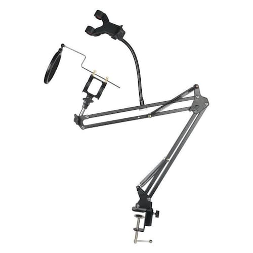 Pedestal Articulado Com Aranha, Pop Filter E Suporte Celular Haste articulada para microfone + shock mount e pop filter + suporte para celular universal - Excelente estabilidade e capacidade de carga. - Proporciona um visual limpo e para a sua estação de trabalho. - Não ocupa o espaço útil em excesso de uma mesa ou superfície, pode ser removido facilmente. - Rotação 360 na base da haste. - Ajuste de 270 para cima e para baixo, rotação de 360 no do microfone. - Molas com ótima pressão para infinitos ajustes, de acordo com a sua necessidade. - Suporte para celular: Comprimento da haste gooseneck:22 cm Largura do clip:até 14 cm Sistema de ajuste por ,360º. - Tamanho da haste:71 cm 34 cm + 36 cm - Capacidade de carga:1,5 kg - Material: aço, plástico - Cor: preto - Itens inclusos: Haste flexível. Shock Mount. Pop filter. Morsa. Suporte para celular universal - Ideal para uso em superfícies com bordas e mesas de rádios, studios, home studios, TVs, entre outros locais. Solução perfeita para músicos, cantores, Youtubers, produtores, narradores, entre outros profissionais. Obs: Não acompanha microfone e/ou celular Marca: Não Informado