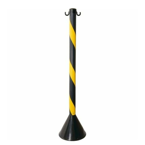 Pedestal para sinalização e segurança confeccionado em 3 partes: base injetada em PP polipropileno , tubo em PVC e tampa injetada em material ultra resistente com dois ganchos opostos do mesmo material da tampa;