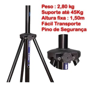 Na Visão Musical, cada pedestal e suporte é fabricado com materiais de alta qualidade e submetido a rigorosos testes de qualidade para assegurar a máxima performance e durabilidade. Nossa equipe de engenheiros e designers trabalham incansavelmente para desenvolver produtos que atendam às necessidades dos músicos e profissionais de áudio. Compromisso com o Consumidor A satisfação do consumidor é a nossa prioridade. Oferecemos um atendimento personalizado e suporte técnico especializado para garantir que nossos produtos superem as expectativas. Estamos sempre à disposição para ajudar nossos parceiros comreciais a encontrar as melhores soluções para suas necessidades específicas. Pedestal para Caixas Acústicas modelos SHORT. Pé com 0,90cm de comprimento. Furação para travamento com pino de segurança. Pêso : 2,84kg Suporte até 45kg Altura fixa : 1,50m Acessórios Inclusos: - Luva adaptadora de 11/4 para 13/8 - Pino de segurança / Tubo 1 1/4 Marca: Não Informado
