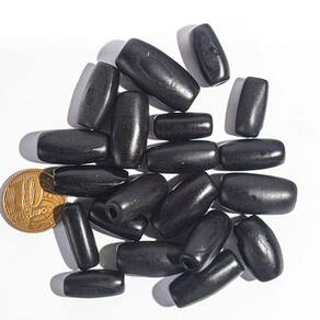 Pedra Basalto Preto Barril Furado Longitudinal 15 a 20 mm Tipo B, Lapidado tipo Barril Furado vasado HORIZONTAL ou longitudinaltural a espessura do furo 3 mm aproximadamente para montagem de artesanato Pingente, colar ou Pulseira.