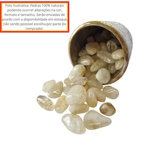 Observações Importantes:Por ser natural, pode apresentar variações nas cores, tamanhos (1 a 2 cm), formatos e peso das pedras. O pacote pode conter também outros cristais ou Quartzos de qualidade similar, garantindo o peso de 250g