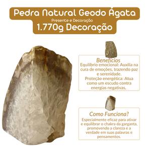 Pedra Natural Geodo de Ágata Natural – 1,77 kg O Quartzo Branco é uma pedra natural conhecida por sua energia purificadora e capacidade de amplificação de vibrações positivas. Em formato de obelisco com ponta polida, é ideal para harmonização de ambientes, práticas esotéricas e colecionadores de cristais. Benefícios da Ágata