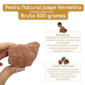Pedra Natural Jaspe Vermelho Bruto – 500g O Jaspe Vermelho é uma pedra natural poderosa, conhecida por sua energia revitalizante e protetora. No formato bruto, mantém suas propriedades intensas e autênticas, sendo ideal para colecionadores, terapeutas e entusiastas de cristais. Benefícios do Jaspe Vermelho