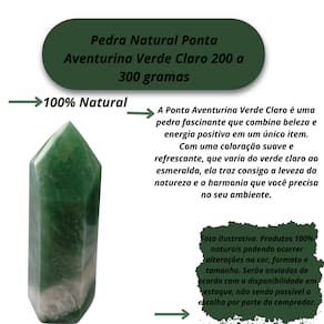 A Ponta Aventurina Verde Claro é uma pedra fascinante que combina beleza e energia positiva em um único item. Com uma coloração suave e refrescante, que varia do verde claro ao esmeralda, ela traz consigo a leveza da natureza e a harmonia que você precisa no seu ambiente.