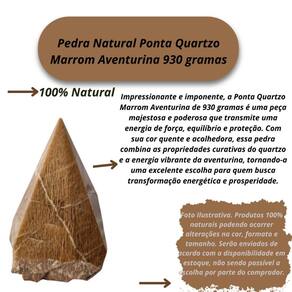 Impressionante e imponente, a Ponta Quartzo Marrom Aventurina de 930 gramas é uma peça majestosa e poderosa que transmite uma energia de força, equilíbrio e proteção. Com sua cor quente e acolhedora, essa pedra combina as propriedades curativas do quartzo e a energia vibrante da aventurina, tornando-a uma excelente escolha para quem busca transformação energética e prosperidade. Sua grande massa e beleza natural fazem desta ponta uma peça de destaque em qualquer ambiente. Seja como elemento decorativo, amuleto de proteção ou ferramenta de cura, ela possui um impacto tanto visual quanto energético. Benefícios da Ponta Quartzo Marrom Aventurina 930 gramas :