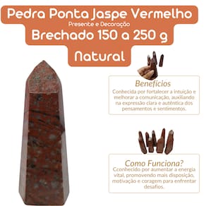 A pedra ponta jaspe vermelho brechado é uma poderosa aliada para quem busca força interior, estabilidade emocional e proteção energética. Com sua cor vermelha intensa, o jaspe vermelho é conhecido por suas qualidades de revitalização, equilíbrio e resiliência, sendo uma excelente escolha para quem quer aumentar sua energia vital e proteger-se de energias negativas.